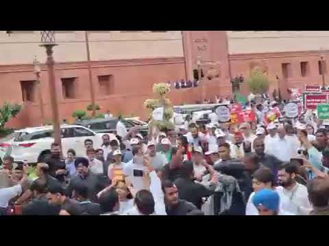 Amid slogans of “Vote Chori band karo [Stop the stealing of votes],” Opposition parties began their march to the Election Commission of India from Parliament.